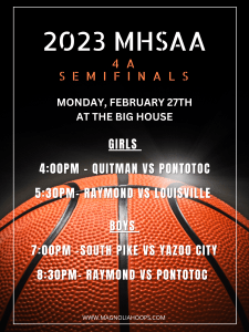 5:30 (G) Region 6 #1 Raymond (25-5) travels 19 miles vs Region 4 #1 Louisville (27-3) travels 95 miles